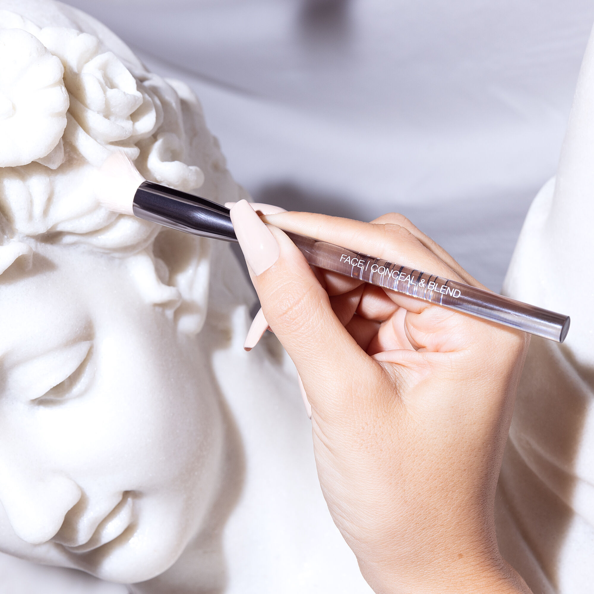 A domed brush with densely packed synthetic fibers that seamlessly buff product into skin for a naturally luminous, second-skin finish. Suitable for liquid and powder formulas. For best results, use with Designer Brand ’s #FAUXFILTER Luminous Matte Liquid Concealer!