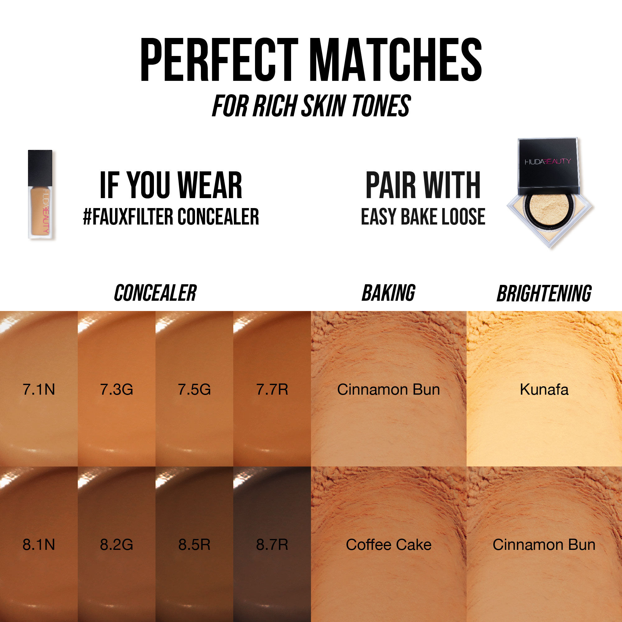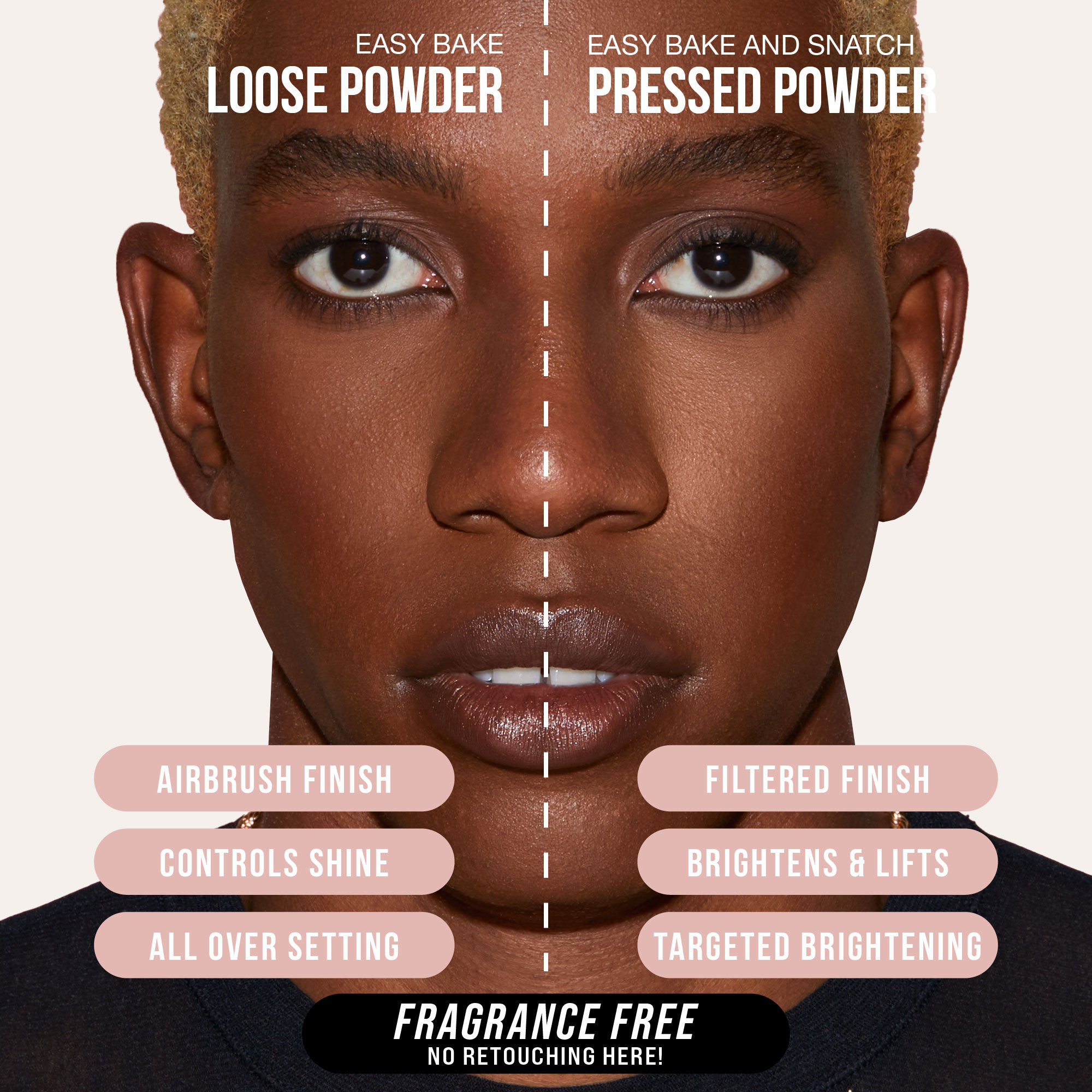 A dusting of Easy Bake leaves a translucent veil on the skin creating a matte finish that controls shine, color corrects, and highlights the different contours of the face without creasing or fading – the ultimate step to an airbrushed finish.